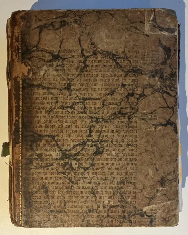 Quarto. pp 588. A substantial Quarto manuscript (approx. 21cm x 16.5 cm), very neatly written. No date, approximately 1760-1780. Clean and in good condition on good quality paper, Britannia watermarked, however with a countermark that we have been unable to identify (see photos). The marbled paper on the boards, interestingly has been made from an earlier black letter law text, which shows through as the marbled inks have faded. Approximately four stanzas to each page, pp 588, psalms numbered 1-150. An attractive, complete rendering of the psalms into verse. The form that each psalm is rendered in varies: the most usual is iambic tetrameter, but occasionally it moves to trimeter or pentameter, with some internal variation. The effect is to make a very smooth reading, one that would translate well into sung form as a hymn. Looking at various examples: Psalm 23: My faithful Shepherd is the Lord. My wants are all supplied. He kindly cheers my fainting Soul, Recalls me where I roam. In righteous Paths directs my Steps and gently guides me home. Psalm 49: Tho some to Wisdom s Counsel deaf, in wordly Wealth confide, The Gold, and Gems, and Large Domaine, Inspire their minds with pride. Psalm 117: Ye Nations of the Universe, To God your voices raise, Let evry Tongue though every Clime Exalt Jehovah s Praise.