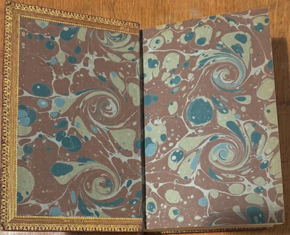 giltlettered spine with raised bands, compartments richly gilt with floral motifs, elaborately gilt turn-ins, marbled endpapers, top edge gilt, all done by Riviere & Sons