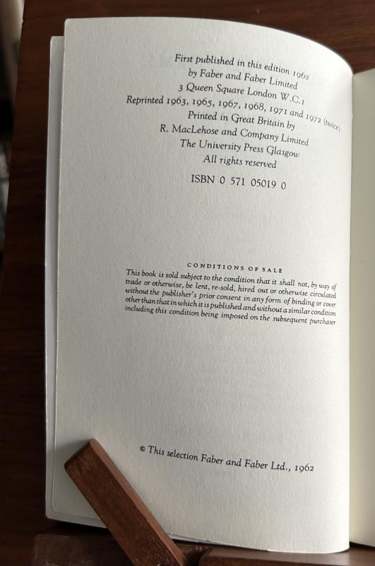 Selected Poems, Thom Gunn & Ted Hughes, Faber and Faber 1962 (reprinted 1972), Signed