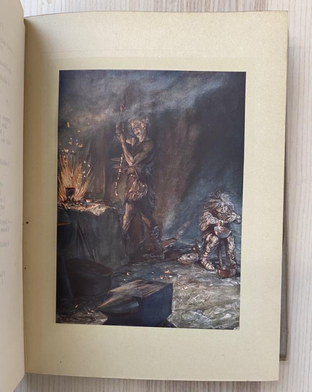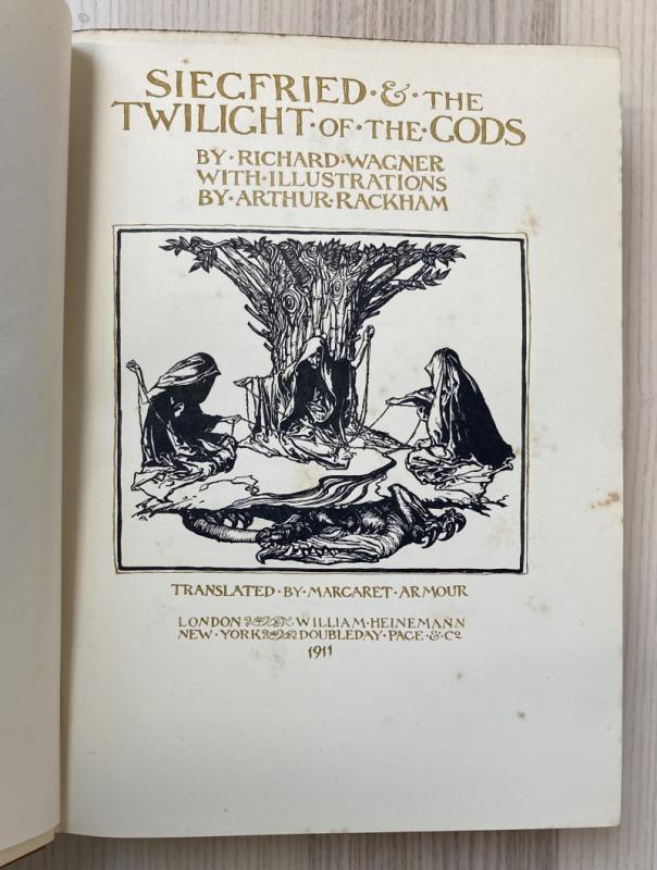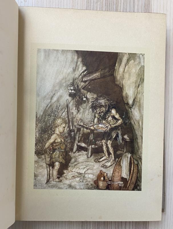 A first trade Rackham illustrated edition, complete in the original wrapper. Illustrated with thirty tipped-in plates, each with tissue-guard; collated and complete. Publisher's advertisement pamphlet loosely inserted. Publisher's buckram in unclipped wrapper. The wrapper is a little edgeworn, with loss and significant creasing at the lower corner of the front panel, and some wear to the upper corners. The head and tail of the spine are a little chipped and creasing, the spine a touch discoloured. The rear panel has a few spots of ink. The book is lightly bumped to the corners, the head of the spine being faded, else appearing very bright. The fore edge is spotted as often with Rackham productions. The binding is strained after the front endpaper and a little tender throughout. Prelims with scattered foxing, and some spotting throughout. A smart first Rackham illustrated trade edition, complete in the dust wrapper.