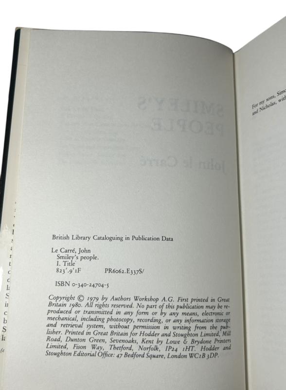 London: Hodder & Stoughton, 1980. This is a very good (or better) copy. The dust jacket is mildly sunned at the spine, and there are a few short closed tears at the top edge and some shelf wear. It has not been price clipped (£5.95 net). The boards are sharp in the publisher’s cloth. The top edge is mildly foxed, and there is a single spot to the side edge. John le Carré’s signature is flat signed, in blue ink, to the front fly. There are no additional inscriptions. Overall, this is a very good (or better) copy, fine with the author’s signature.