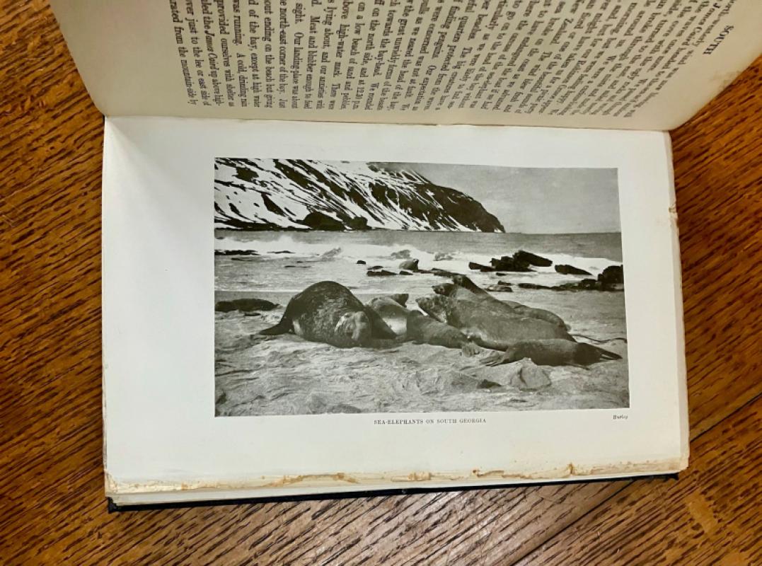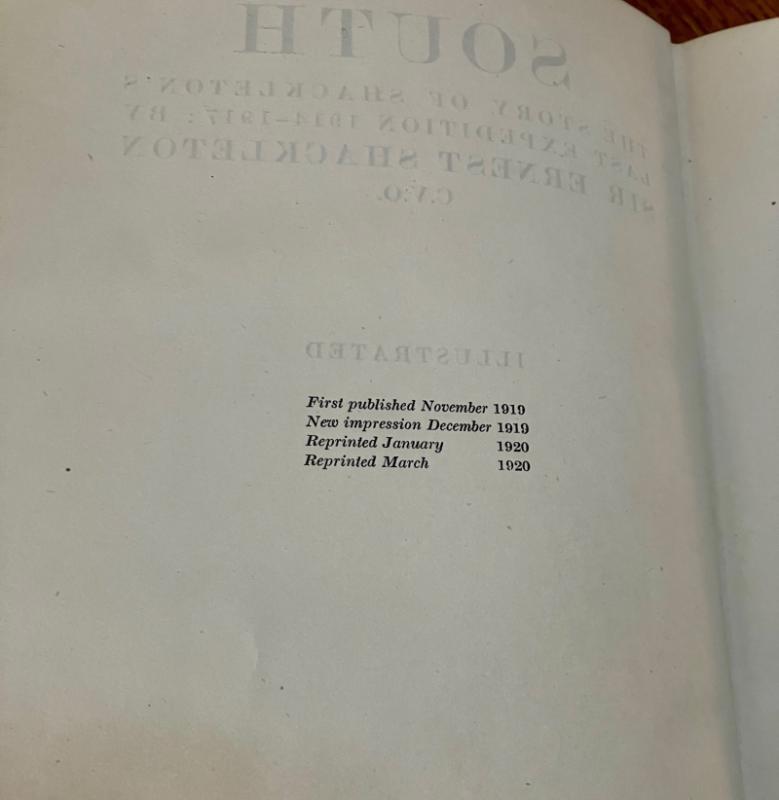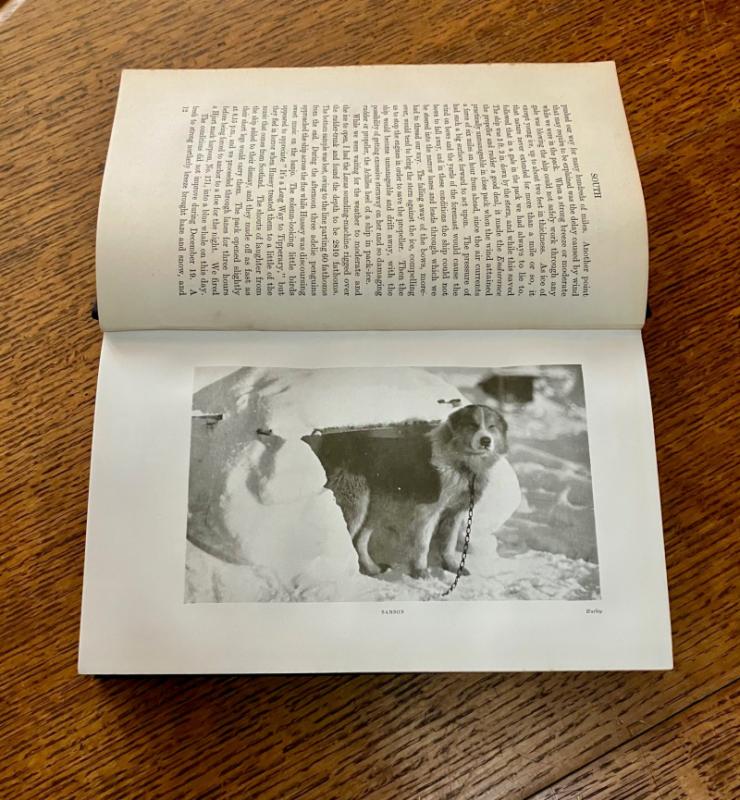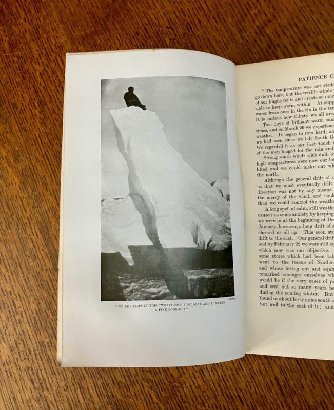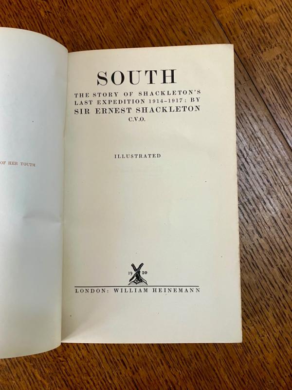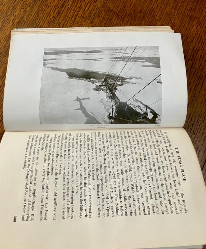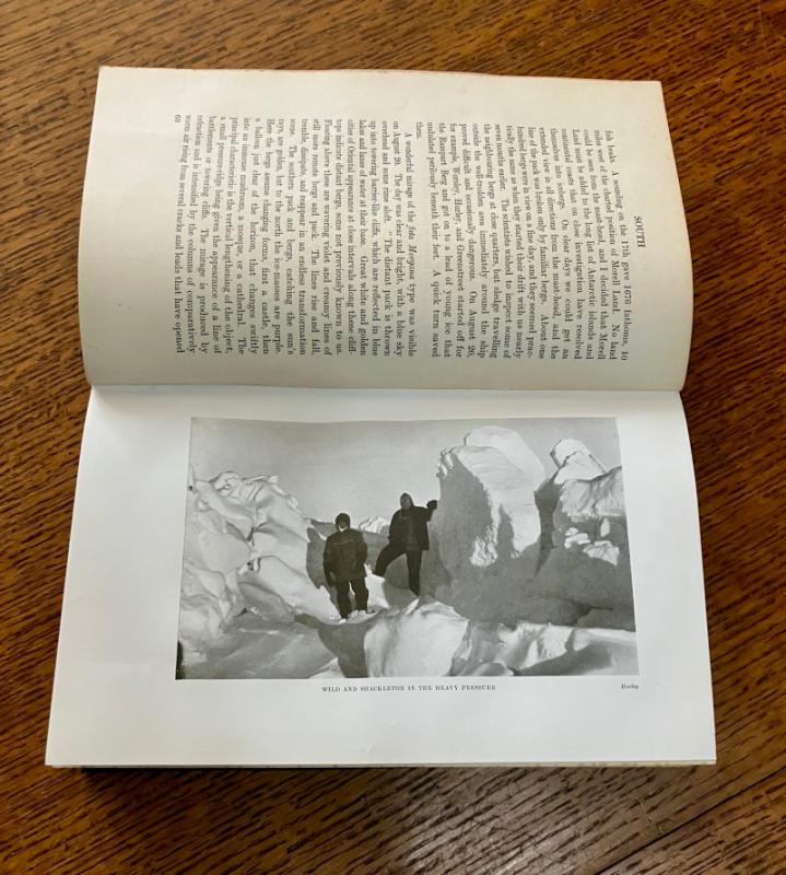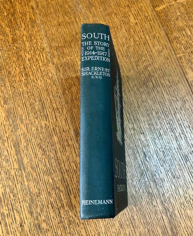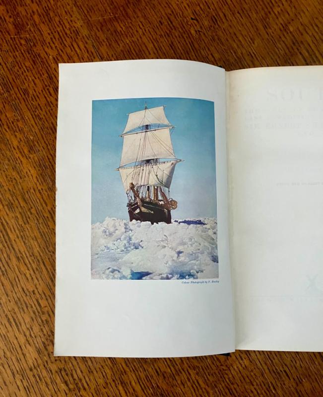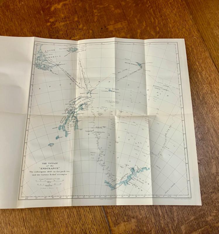 Fourth printing. March 1920, four months after the first edition, and in the same format. Large 8vo. (10.1 x 6.5 inches). Illustrated with colour frontis, five maps-including one large folding colour printed map at the rear, and 87 mono photographic plates. A little offsetting to the blank endpapers. One of the plates has a frayed edge, but well away from the images. Overall this is a very good clean copy internally. The first impression was printed on poor quality paper and is prone to browning. A better paper was used on this later printing. Publishers dark blue cloth binding with silver illustration of The Endurance to front board. Spine and front board lettered in silver. Publishers blind stamped device to back board. A few small white spots to the cloth and a little minor rubbing to the edges but overall this is a very good copy of this classic book.