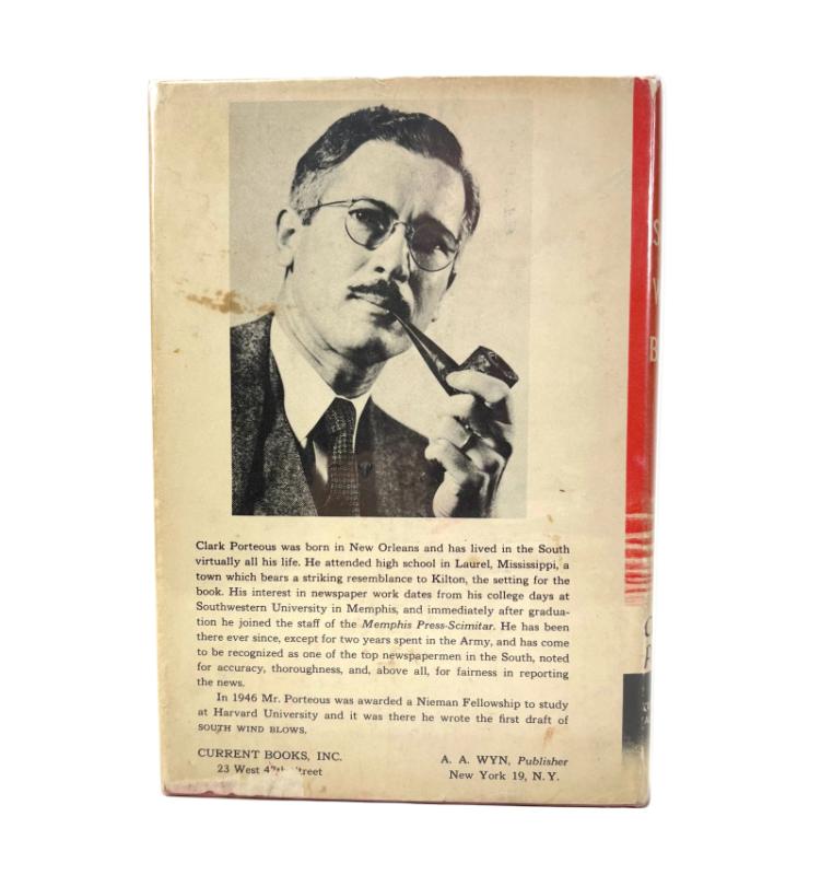 A first edition, first impression of South Wind Blows, published in New York in 1948, representing Clark Porteous' contribution to post-war American literary fiction. Issued by Current Books, Inc. under the A. A. Wyn imprint, the novel reflects the period's interest in psychologically driven narrative and socially conscious themes. Offered here in notably fine internal condition, this is an attractive surviving example of a comparatively uncommon mid-twentieth-century first edition.