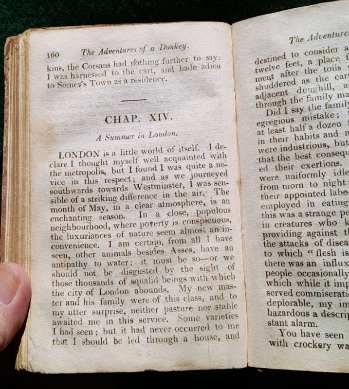 Black Beauty, the famous book written from the horse’s point of view, must surely have been influenced by this book about the hard life of a donkey called Jemmy, told in its own words….The Adventures of a donkey was one of the first books to highlight the tough life that working animals endured, told in this way. This book also gives a fascinating glimpse of working life and trades in Georgian London.