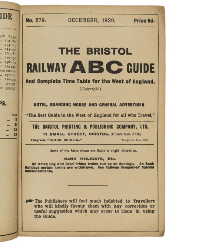 The Bristol Railway ABC Guide, and complete time table for the west of England.
