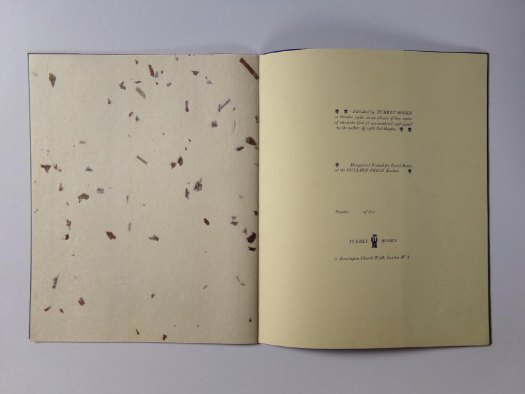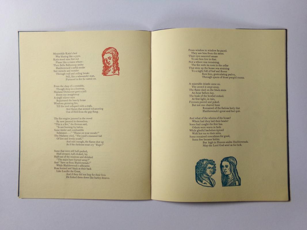 Illustrated with found medieval woodcuts, printed in colour. One of 225 unnumbered copies, from a total edition of 300 copies. Title page hand set in 48' Perpetua type and printed on a leaf of Japanese paper impregnated with slivers of bark. Text hand set in 12' Caslon type and printed on cream-coloured Glastonbury paper. Sewn into original plain wrappers. Designed and printed at the Goliard Press. Fine copy, in printed blue hand-made paper dustjacket.