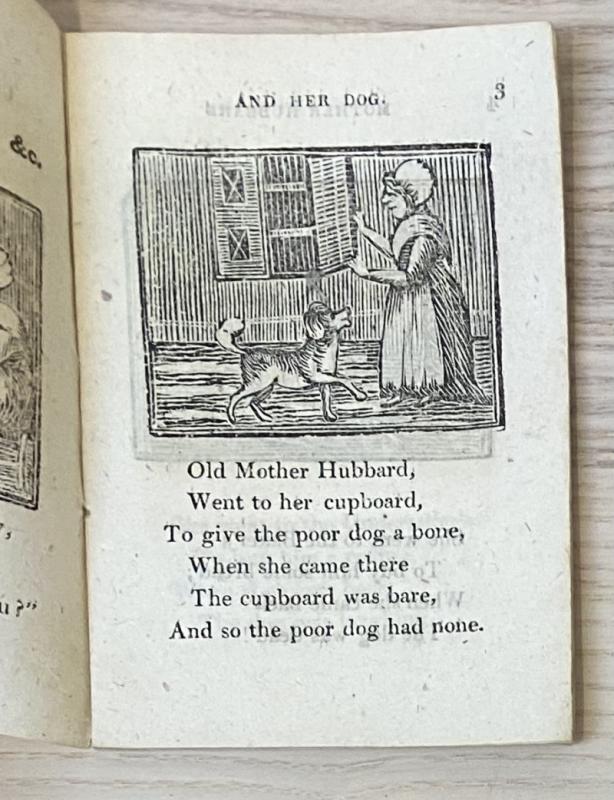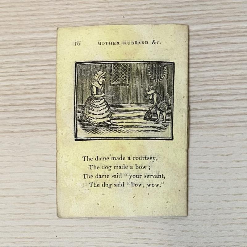 c1820. Publisher's yellow paper wraps, 16pp. Illustrated with woodcuts throughout. Some light wear and fading, minor spots throughout, structurally firm and without losses. A charming early 19th century chapbook edition of the popular nursery rhyme Old Mother Hubbard, this a James Kendrew printed edition.