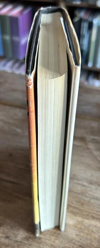 The clipped dust jacket, protected in a clear, removable cover is in good condition with slight loss to the corners of the front cover, nibbling to the top edge of the front cover, loss to the top edge of the spine, loss and nibbling to the bottom edge of the spine, a small tear to the top edge of the back cover, a crease to the bottom edge of the back cover and a darkened back cover.