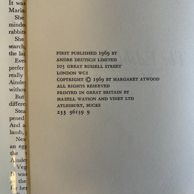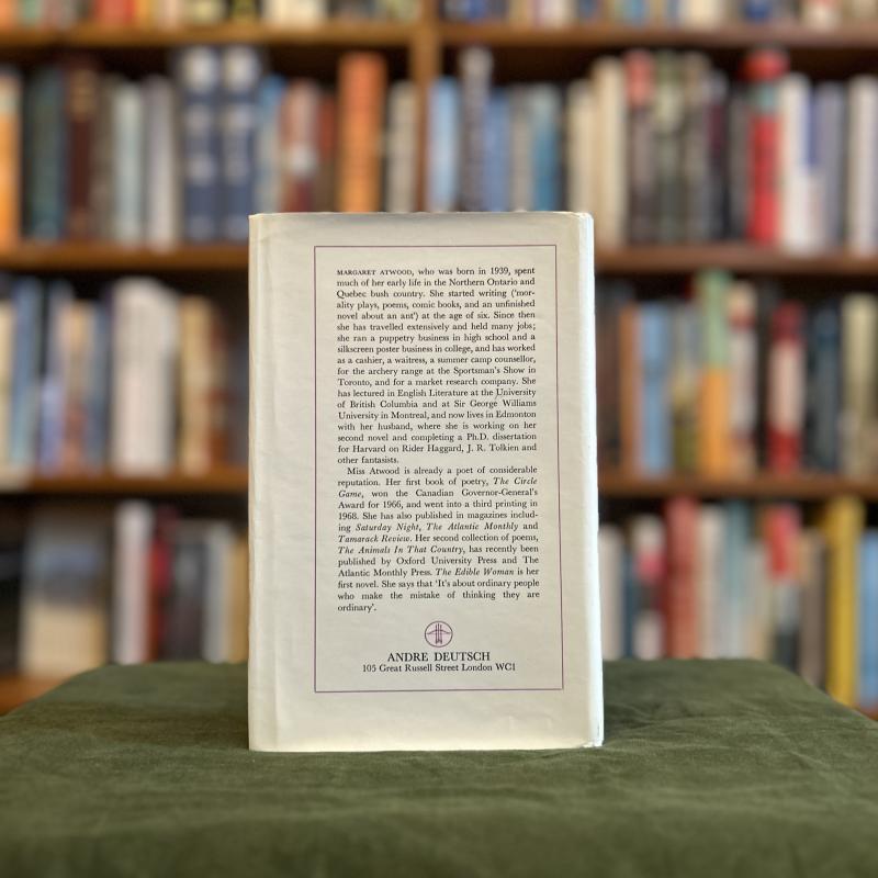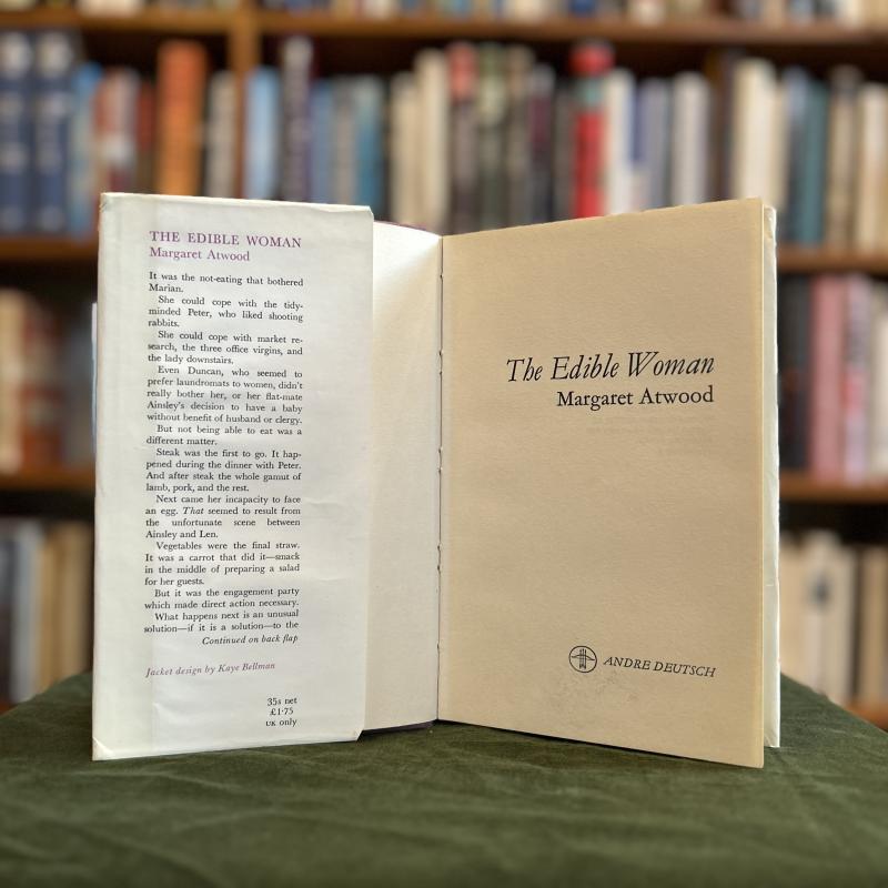 A near fine first UK edition of prizewinning Canadian author Margaret Atwood’s debut novel The Edible Woman, first published in Canada by McClelland and Stewart in 1969. A self-described “protofeminist” work, the story follows a female market researcher whose consumerist world begins to lose coherence following her affair with an eccentric graduate student. Written in 1965 during the rise of the women’s movement in North America, the novel evinces Atwood’s early interest in gender, sexual politics, and consumer culture, laying the groundwork for her reputation during the 70s as one of the most important emerging voices in Canadian literature and feminism. This rare first UK edition features minimalist jacket art by famous book cover designer Kaye Bellman and is in exceptional condition, with an unclipped (£1.75) dust jacket and only minor shelf wear to the boards.