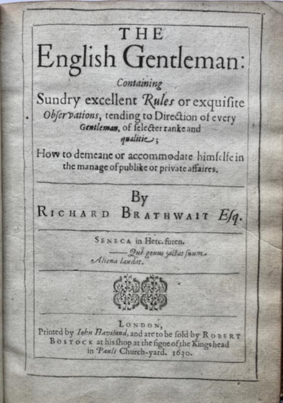 The English Gentleman: Containing Sundry excellent Rulesor exquisite Observations, tending to Direction of every Gentleman, of selecter ranke and qualitie; How to demeane or accommodate himselfe in the manage of publike or private affaires.