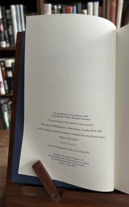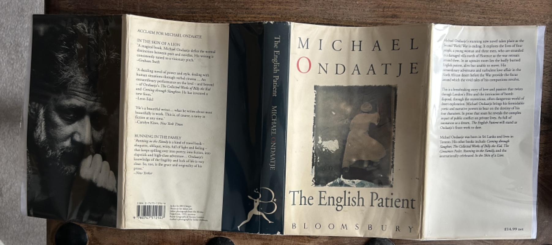 The English Patient, Michael Ondaatje, Bloomsbury, 1992, First Edition, First Impression Winner of the 1992 Booker Prize, the 1992 Governor General's Award, the 2018 Golden Man Booker award and adapted for film in 1996 winning nine Academy Awards, this book follows four dissimilar people brought together at an Italian villa during the Italian campaign of World War II. The book is in fine condition. The binding is straight and tight, the boards clean and the lettering on the spine bright. The end papers and pages are free from marks, tears and inscriptions. The original blue silk ribbon is still fully attached. The unclipped dust jacket, protected in a clear, removable cover is in near fine condition with marks to the front cover, nibbling to both edges of the spine and a crease mark to the bottom edge of the back cover. Will be dispatched carefully wrapped in bubblewrap and a cardboard box.