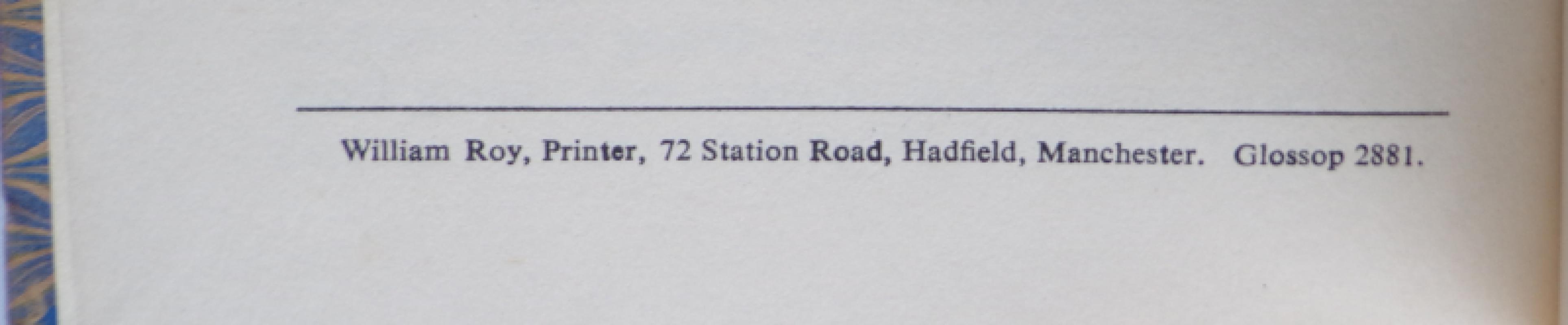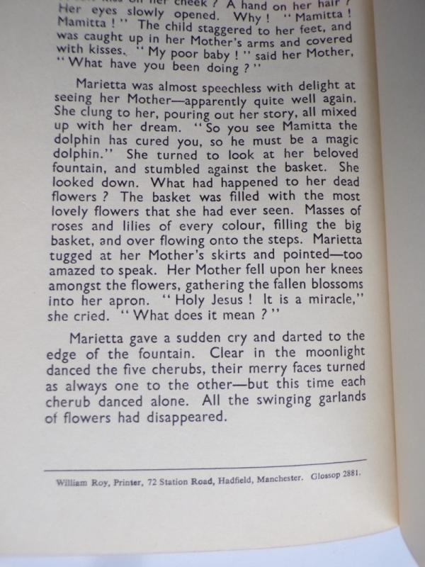 This is what appears to be a possibly unique copy of a self-published children’s book by a Celia Noble, bound in a very attractive designer quarter leather binding with the titling on the upper cover serving as the title page, inscribed by the author on the front endpaper with the date of 1957. This is followed by a dedication page with the words “For my Children”, the story itself runs to 8 printed pages. printed by William Roy of 72 Station Road, Hadfield, Manchester.