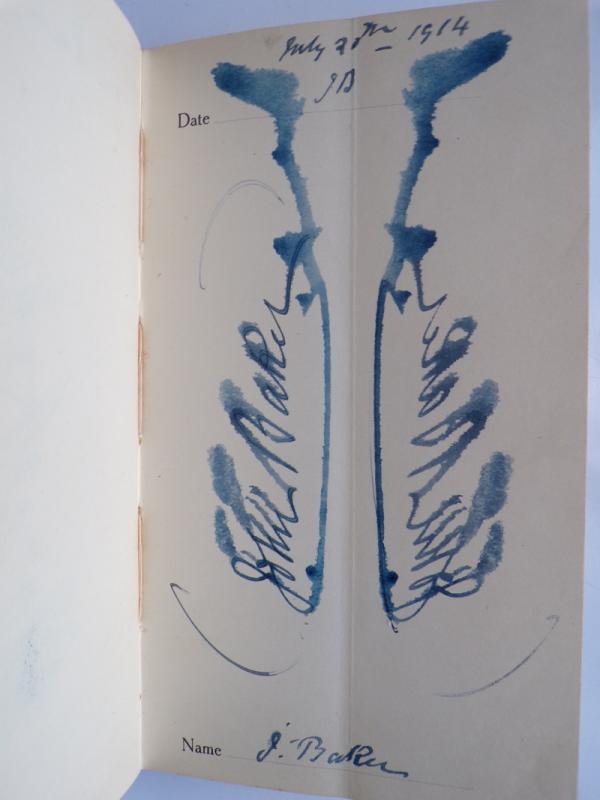 The book was first used with signatures dated 1914, which comprises the first third of the used book, the