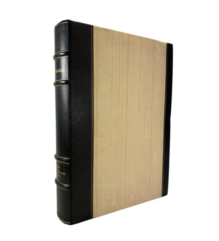 A very good copy of this impressive, and substantial volume of large proportions. A hardback with vellum spine and corners, with raised bands and gilt title to spine. With blue cloth over boards with gilt title to front. Some markings, wear and scuffs to the blue cloth and some minor marks to the vellum, but still a most handsome volume.