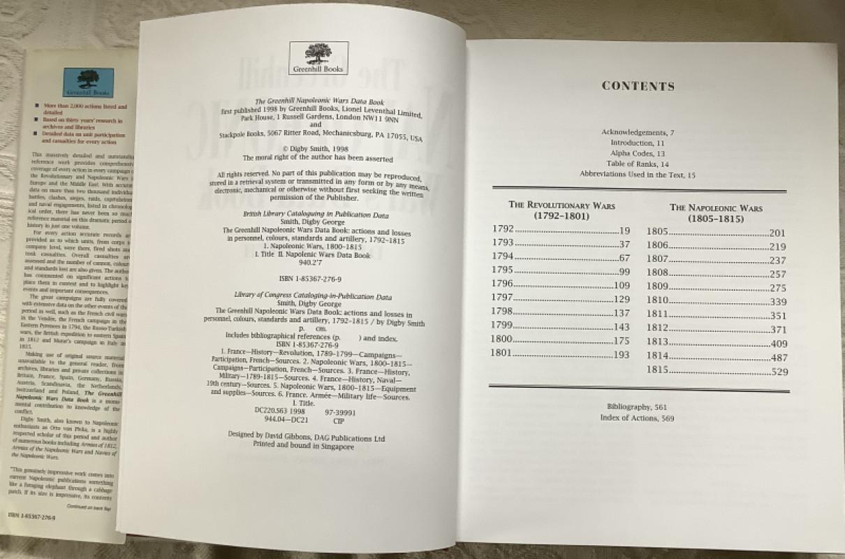 The Greenhill Napoleonic Wars Data Book.Actions and Losses in Personnel, Colours , Standards and Artillery,1792-1815.