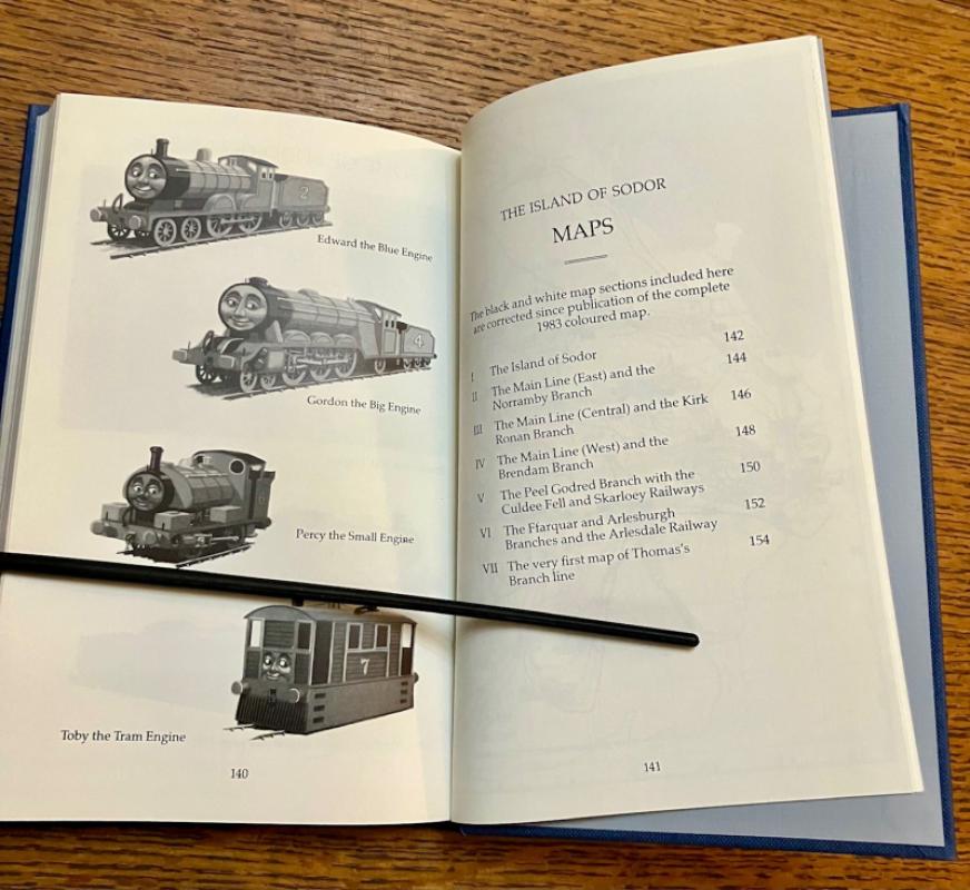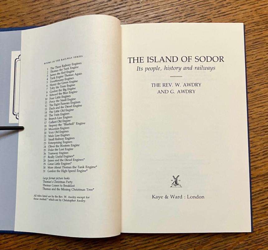 FIRST AND ONLY EDITION. Signed by The Rev. Awdry on a bookplate mounted onto the front pastedown endpaper. Illustrated with seven maps, two leaves of illustrations of some of Sodor's Engines and five mono photos of the Rev. Awdry. Publishers blue cloth with gilt stamped image of Thomas the tank Engine to the front board and gilt lettering and ruled lines to the spine. A fine copy in a near fine original dustwrapper, illustrated in colour and gold, which has some minor creasing to the edges and a small production fault where the laminate on the front panel has creased in two places (see photo). ------ A detailed study of the fictional island of Sodor, the home to Thomas the Tank Engine and his friends, created by brothers Wilbert and George Awdry, this is a rare volume which the publishers have not reprinted, with the added bonus of having The Rev Awdry's signature present.