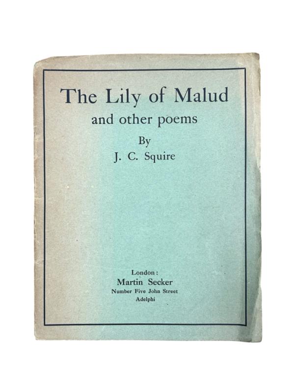 John Collins Squire (1884-1958) was an English journalist, playwright, a leading poet of the Georgian school, and an influential critic and editor. Squire was educated at Blundell’s School and at St. John’s College, University of Cambridge. He was appointed literary editor of the New Statesman in 1913, and acting editor in 1917. From 1919 to 1934 he was editor of the London Mercury, which was to become the unofficial organ of the Georgian poets.