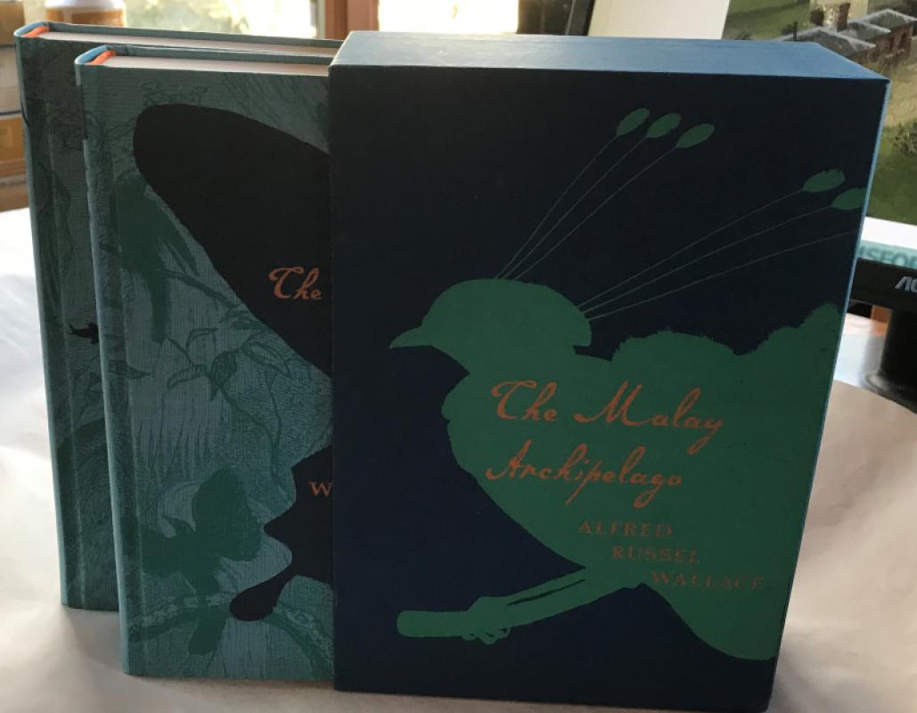 Published by The Folio Society, London, 2017, 1st edition thus. First published 1869. Two volume set in slipcase. Blue cloth boards with illustrations of birds and insects to front boards. Orange and black lettering to spine. Orange lettering to front boards. Contained in a blue slipcase which has orange lettering superimposed on a green outline of a bird to one side. Each volume 9.5ins x 6.5ins. Volume one: lvi, 331pp plus colour frontis and 32pp plates (nearly all in colour). Also maps and other black and white illustrations within the text. Volume two: xv, (i), pps 331 to 665 plus colour frontis and 32pp plates (mostly colour). Also some black and white illustrations. Preface by Steve Jones. Introduction by George Beccaloni. Books Fine. Slipcase bumped to bottom rear - VG. A fairly scarce set.