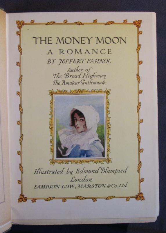 Hardback. 350pp. No date but the only books mentioned as also by Farnol are The Broad Highway and The Amateur Gentleman so presumed 1911 and a first edition. Illustrated by Edmund Blampied. Illustrated green cloth with blind impressed borders to front round a gilt bordered central colour illustrated panel in an art nouveau style and containing a colour illustrated paste-down. Gilt titles to spine with further colour illustration. Colour illustrated title page. Col. frontis and 21 further colour plates all with captioned paper guards. Colour illustration to title page. 235 by 135mm (9¼ by 5¼ inches). Pages uncut.