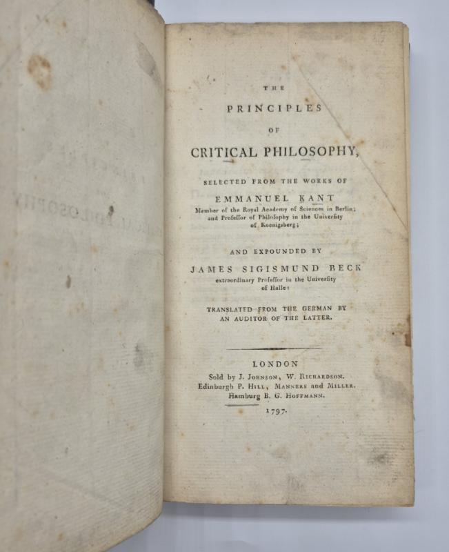 criticism, and as such is a very early translation of Kant’s philosophy into the English