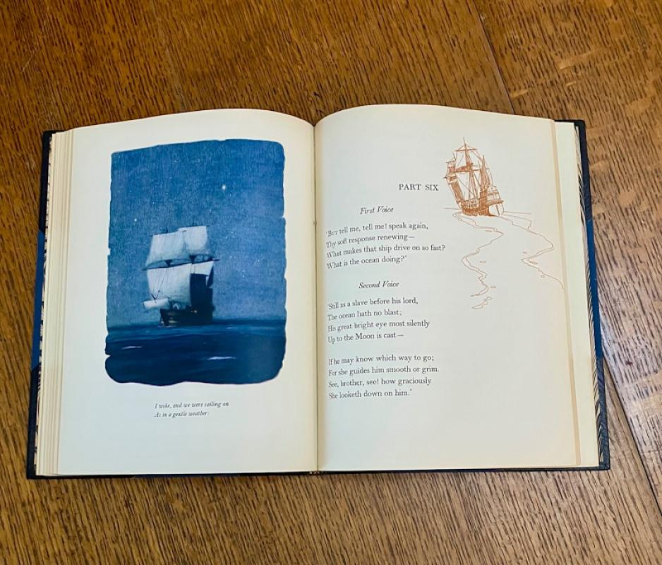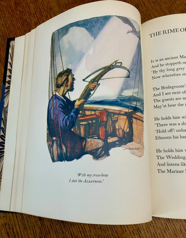FIRST GRANT ILLUSTRATED EDITION. 4to. (11 x 8.7 inches). Beautifully illustrated throughout with 8 full page colour plates and each text page with tan ink printed line illustrations around the type. A fine, bright copy finely bound, for Asprey, in half black morocco. Spine with two raised bands, each with gilt piping. Compartments ruled and lettered in gilt. navy blue cloth on boards. Marbled endpapers. All edges gilt. The binding is signed by Aspreys in gilt letters to the bottom of the inside front board. There is no binders signature but this is certainly the work of a master bookbinder, very likely Sangorski and Sutcliffe, who did a lot of work for the firm. A truly handsome copy of this classic work. There was no UK edition published.