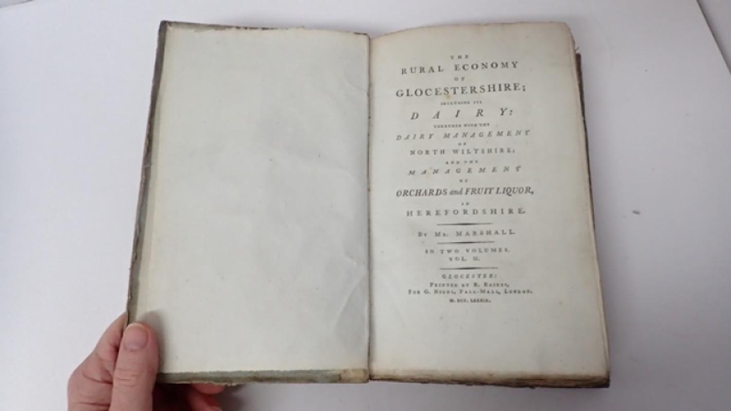 (The Prince of Wales and The Duchy Provenance) Mr Marshall The Rural Economy volumes, original publishers boards, vellum spine with the ink stamps of the Prince of Wales, The Duchy Arms and Country Library, uncut edges, ex libris label Courtney Library, half title, advertisement, errata. Voll II only of (spelled) Glocestershire. [iv], 401 pp, + Index. Additional photos are available upon request. When securely packed this item will weigh in the region of 776g. (YBP Ref: 035333:15e)