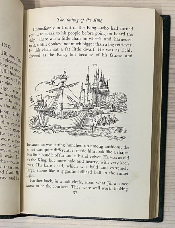 First edition, first impression. Recently bound in splendid full morocco. Gilt titles, decorations and bands to spine, gilt borders and all edges gilt. Externally lovely. Renewed endpapers. Prior owner's name removed from half title page. A few light handling marks and small stains to prelims, a few spots to first and final leaves, else pages appear unspotted and bright. Page 176 (with illustration verso) having had the lower corner cut out, see image. Illustrated by Pauline Baynes, including black and white frontispiece. A beautiful example, in a wonderful modern leather binding.