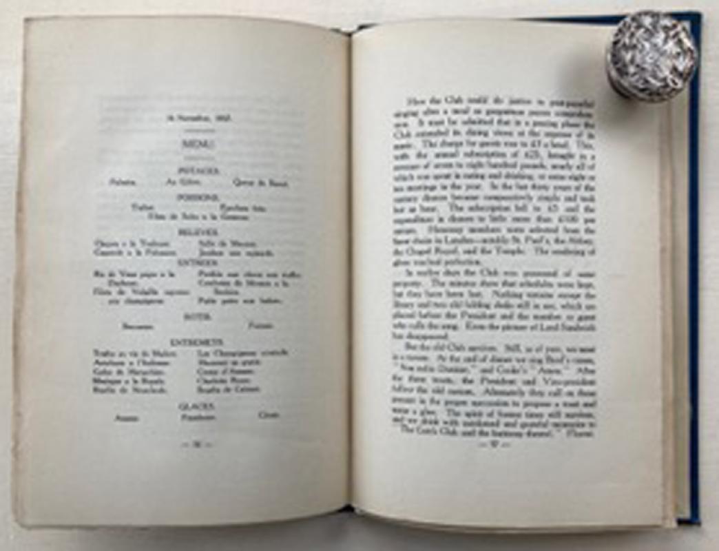 A unique "Association Copy" of the rare First Edition of this story of the highly exclusive musical society formed in London in November 1761 to encourage the composition and performance of vocal part-songs, specifically catches, glees & canons and its significant role in shaping 18th-century English vocal music. Meetings were a mix of music, fine dining, and drinking, with a strong focus on high-quality claret. While catches often had ribald or "bawdy" themes, the club eventually shifted toward more refined glees in the 19th century The club attracted numerous royal members, including George IV (elected 1786) and William IV (elected 1789) and membership was extremely selective, with long waiting lists and a ballot system for entry. Professional singers were also elected to assist the amateur "noblemen and gentlemen" in their performances.