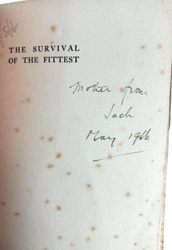 The Survival of the Fittest, inscribed by the author to his mother, 1st, 1916