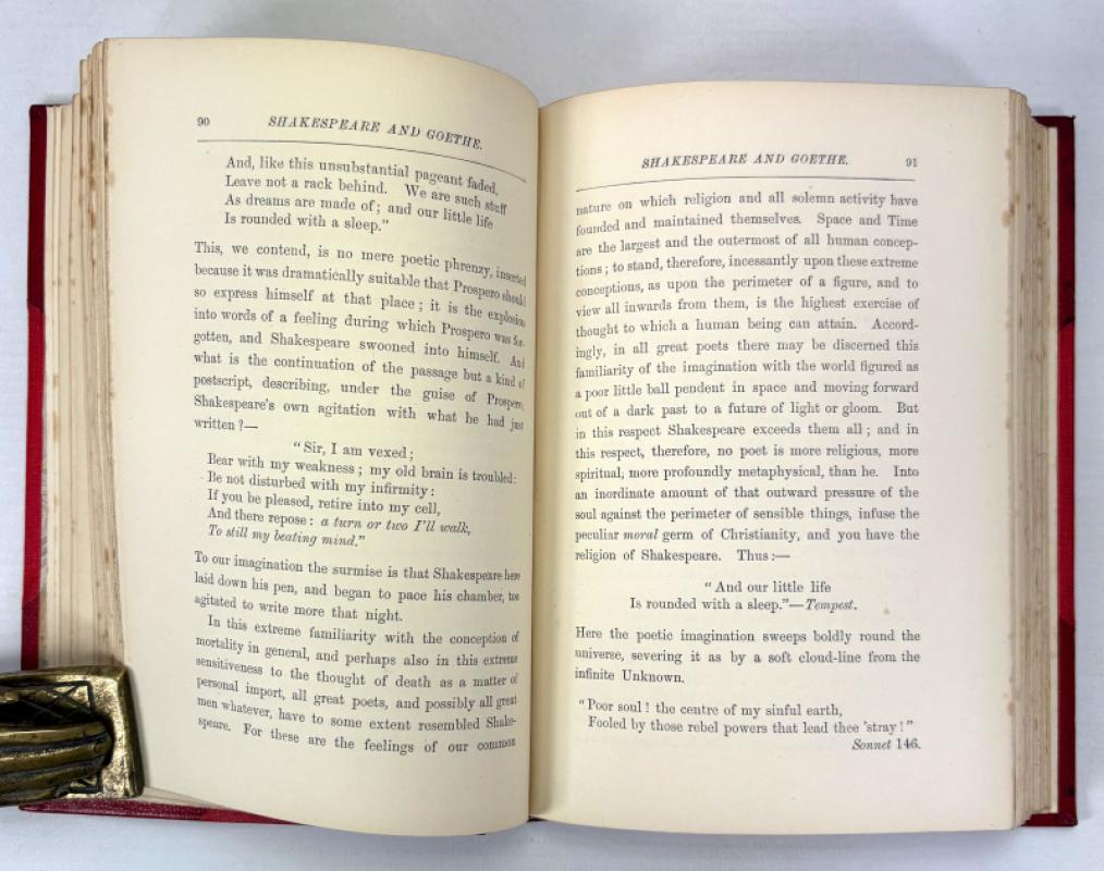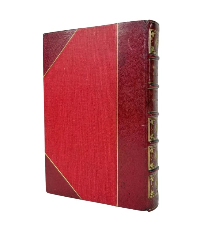 A near fine hardback with red leather spine and corners with gilt rules, and red cloth over boards. The spine features tooled gilt decoration, raised bands and gilt titles. Marbled endpapers with gilt top edge. Some minor marks to leather.