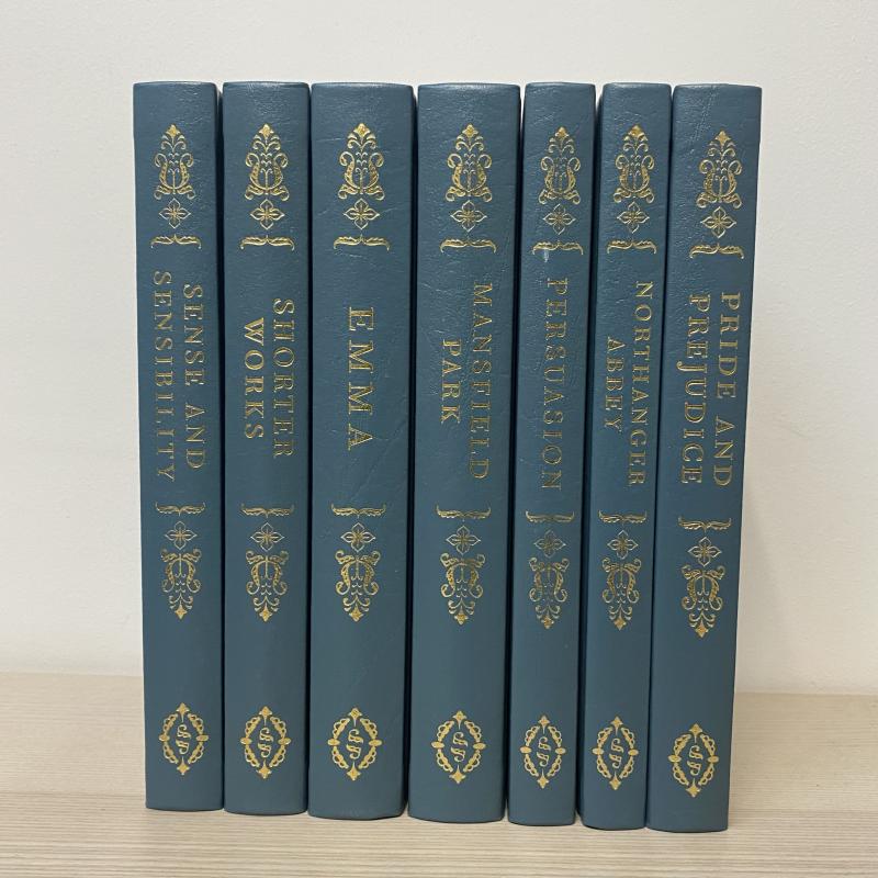 Limited edition of 1,000, lacking slipcase; thirteenth printing, 1996. Introduction by Richard Church, illustrated with woodcuts by Joan Hassall. Publisher's full teal morocco, gilt inset profile portrait of Austen to boards, gilt titles, decorations and borders. Just light rubbing to the extremities, Persuasion with a small mark to the spine, bindings remain very tight and leaves bright and clean. No prior ownership inscriptions. A desirable specially bound Folio Society edition.