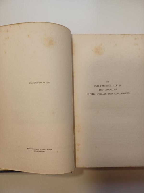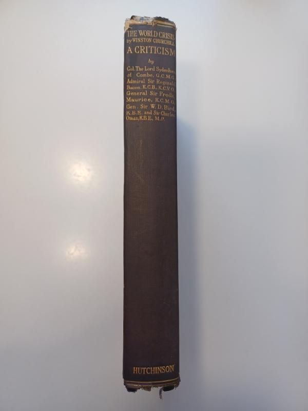 Previous owners bookplate to ffep. Light rubbing to corners of boards and head and tail of spine. There are minor marks to boards and spine with a small dent to rear board. Some spotting to page edges and margins with some mottling to end papers and title page. Darkening to pages 72-73 where advert slip for The World Crisis Omnibus edition is loosely inserted. Maps and illustrations complete.