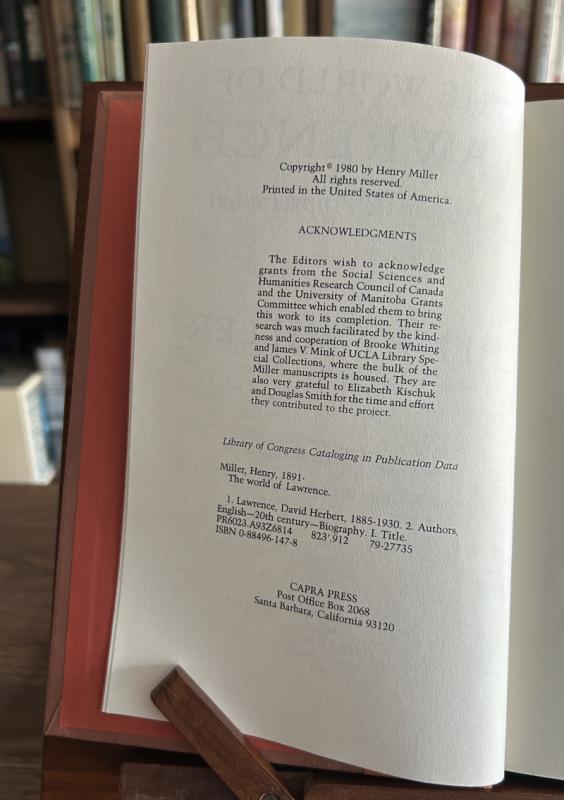 The World of Lawrence: A Passionate Appreciation, Henry Miller, Capra Press, 1980, First Edition, First Impression