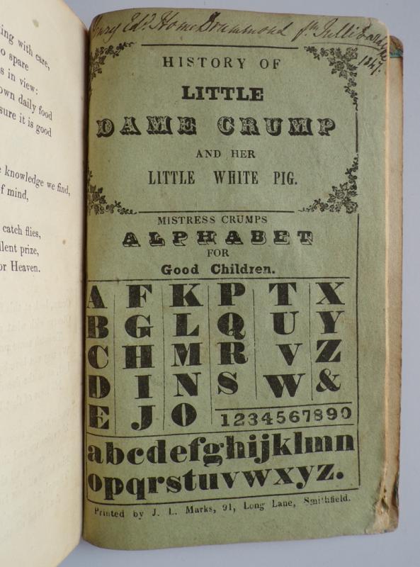 1847 THREE VICTORIAN CHILDREN’S BOOKS / CHAPBOOKS The History of the House that Jack Built ( Published by Grant and Griffith) Grandmamma’s Book of Rhymes for the Nursery ( Published by Grant and Griffith) History of Little Dame Crump and Her Little White Pig ( Printed by J L Marks )