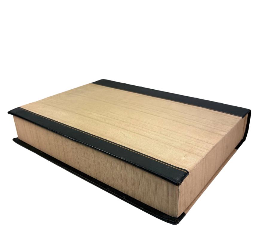 The outer solander case is of substantial, and strong, construction; half leather with raised bands and gilt titles. With fabric over boards (almost a wood-like appearance to the design). Box with a few minor marks and light bumps.