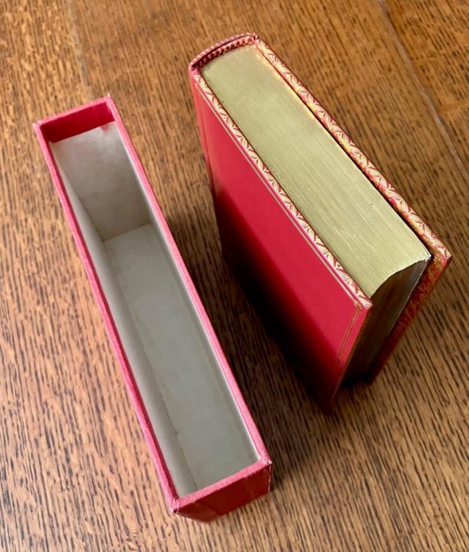 FIRST EDITION. 1st impression. 8vo. (7.5 x 5.2 inches). A Fine copy Finely bound by Bayntun (Riviere) in full red calf. Boards with double gilt ruled border with floral corner pieces. Spine with five raised bands,each with wavy gilt line. Compartments double ruled and decorated in gilt. Green and Blue labels, gilt. Board edges and inner dentelles in gilt. Marbled endpapers. All edges gilt. Housed in a cloth covered, felt lined, slipcase. A beautiful copy of this classic.