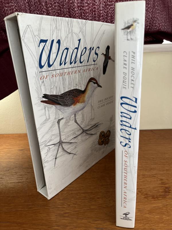 ‘Waders Of Southern Africa’ ~ by Phil Hockley; pub by The Struik Publishing Group, Cape Town 1995; with slip case; with jacket; large 4to - c9 ½” x 12”, 288pps, numerous colour plates and b&w illustr; printed on a heavy mat art paper; jacket in vg condition, book has some slight foxing on edges, but no foxing on any inside pages & is in vg condition. Slip case has some slight damage to top and bottom.