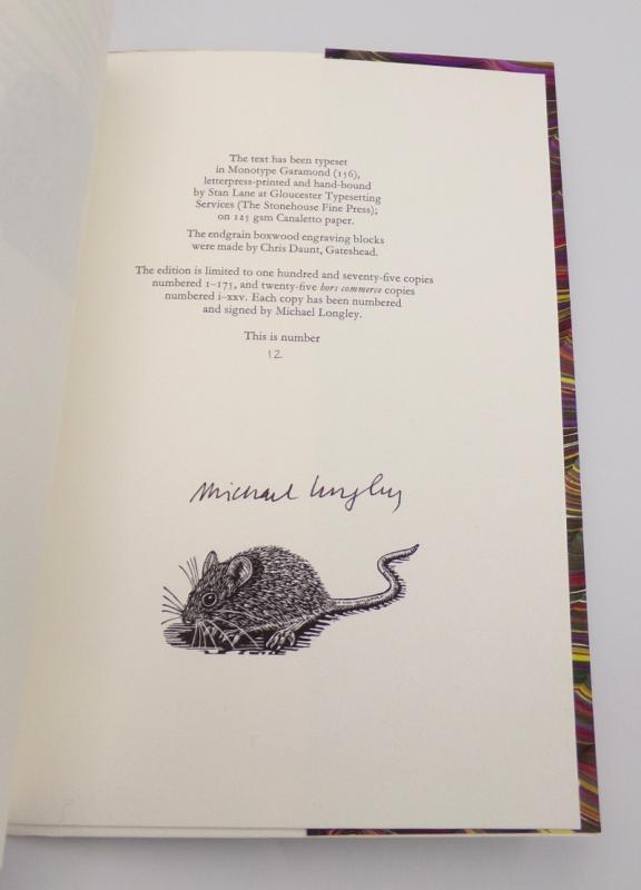 LONGLEY, Michael. Wavelengths. London: Enitharmon Press 2009. Illustrated by Geoffrey Morgan. One of a limited edition of 175 numbered copies signed by the author. Typeset in Monotype Garamond by Gloucester Typesetting, letterpress printed on Canaletto 125 gsm paper and hand-bound in plain wrappers at the Stonehouse Fine Press. Fine copy in marbled dj, with printed label pasted to front cover, as issued.
