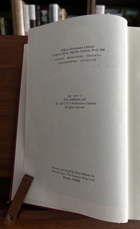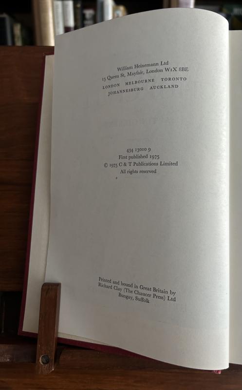 The binding is straight with a little movement, the boards clean apart from some grazing to the front board and the lettering on the spine bright. There is minor shelf wear to the top and bottom edges of the boards. The end papers and pagers are free from tears and inscriptions. The top edge retains its original red tint. The unclipped dust jacket is in near fine condition with a sunned spine, nibbling and a tear to the bottom edge of the spine and sunning to the bottom edge of the front and back covers.