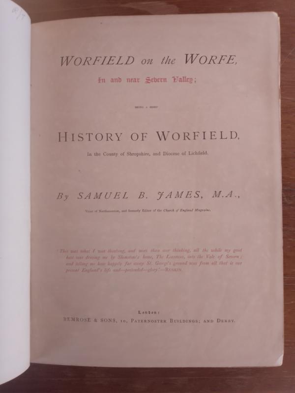 Worfield on the Worfe In and Near Severn Valley; being a brief History of Worfield in the County of Shropshire and Diocese of Lichfield