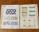 Original printed paper covers, spiral-bound, (12 x 8.9 inches). 20 pages, all pages except one have vibrant colour swatches attached and the volume is complete with 69 examples in total. Signs of a label having been removed from the inside rear cover and the covers a little rubbed and creased, but the insides are bright and clean and the swatches in lovely fresh condition, the colours bright and strong. Some swatches have one corner turned over purposely to show the reverse side of the sample. A beautiful selection of late 1960's fabric designs.